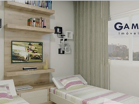 02 QUARTOS, SENDO 01 SUÍTE, SALA EM 02 AMBIENTES, COZINHA, ÁREA DE SERVIÇO, GÁS CANALIZADO, SALÃO DE FESTAS, ESPAÇO PARA PLAYGROUND, PORTARIA PROJETADA PARA 24 HORAS, LOCALIZAÇÃO PRIVILEGIADA.