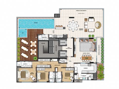 GARAGEM P/ 3 CARROS, APTOS COM 166,2M² Á 342,60M² . COBERTURA LINEAR, SALA EM 3 AMBIENTES, 3 SUÍTES MASTER C/ CLOSET, LAVABO, BANHEIRO SERVIÇO, VARANDA GOURMET C/ CHURRASQUEIRA, PONTO AR NOS QUARTOS,