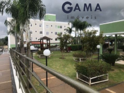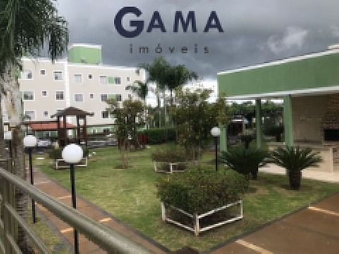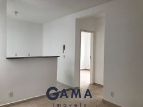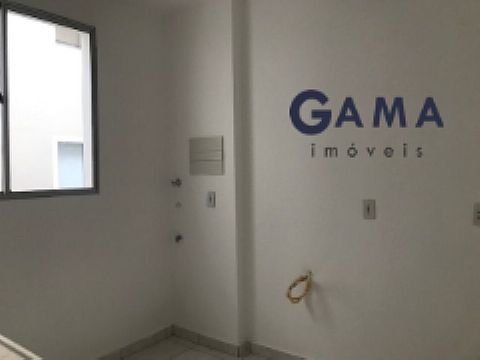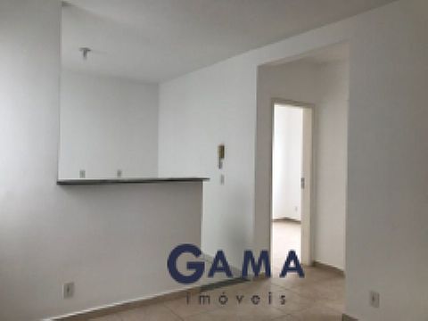 Sala com cozinha em estilo americano, dois quartos, banheiro social, área serviço e garagem.