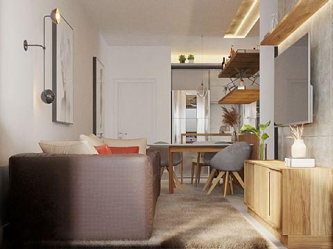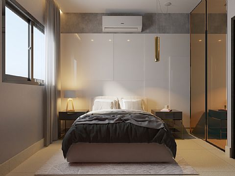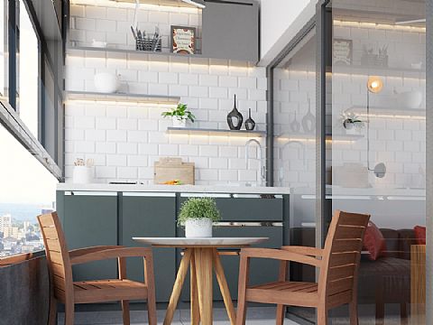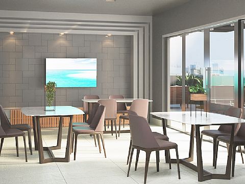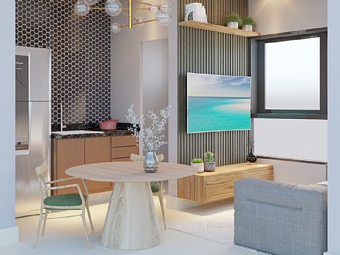 A não ser pela planta studio, todas as unidades contam com dois quartos (uma suíte), sala em dois ambientes e varanda gourmet.