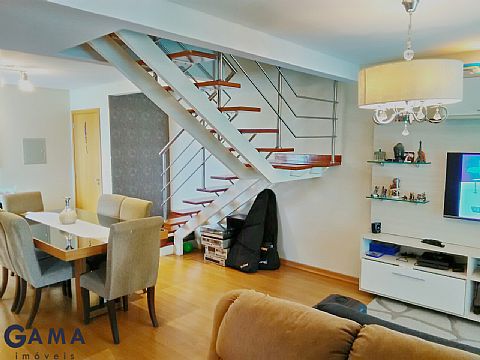 DUPLEX, 1º ANDAR, SALAS GERMINADAS C/ SACADA, FORRO EM GESSO, ILUMINAÇÃO LED. QUARTO CONVERTIDO EM ESCRITÓRIO, LAVABO, COZINHA PLANEJADA AMPLA E AS SEPARADA. 2º ANDAR: TRÊS QUARTOS, UM SUÍTE C/ CLOSET, BANHEIRO C/ PIA DUPLA, QUARTO DA FRENTE C/ SACADA. MÓVEIS EMBUTIDOS.