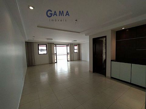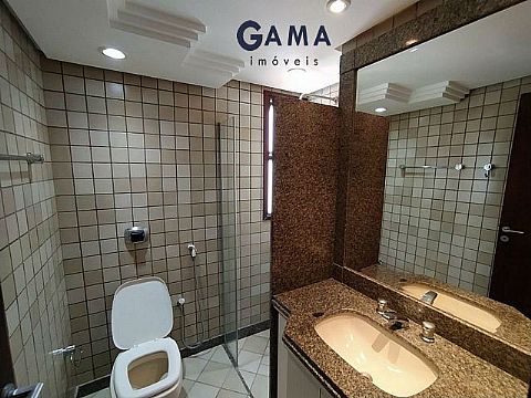Sala em três ambientes com sacada, cortina de vidro nas sacadas, lavabo, 04 suítes, sendo a Suíte máster com hidromassagem 02 suítes com ar condicionado, cozinha. área de serviço, dependência completa de serviço, armários em todo apto, 01 apto por andar, 03 vagas livres de garagem, 02 elevadores, salão de festas, salão de jogos, portaria 24 horas, e área de lazer com piscina aquecida. Condomínio R$ 1.800,00.