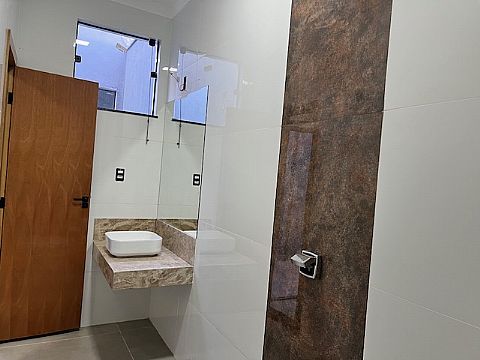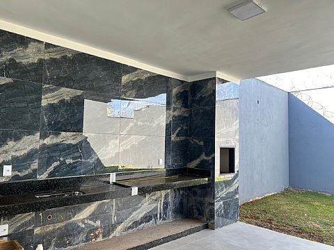 Casa nova, com 180m² de área construída e 300m² de terreno. Sala, 03 suítes, banheiro social, cozinha, lavanderia, área gourmet externa e quintal. 02 vagas de garagem.